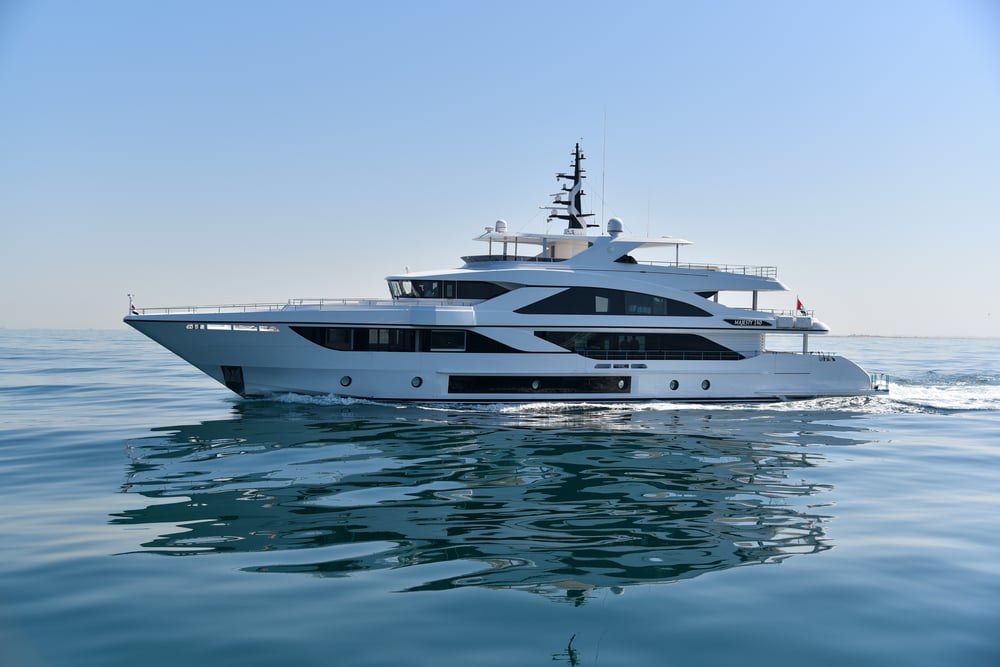 The newly unveiled Majesty 140 is an elegant 140-foot superyacht that offers unrivaled luxury. It’s extensive glass side windows allow plenty of sunlight inside and give the guests stunning panoramic views of the seascape around.
